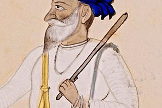 I was walking through the West Sacramento Gurdwara when I saw the image of Guru Gobind Singh sitting astride a white rearing horse.